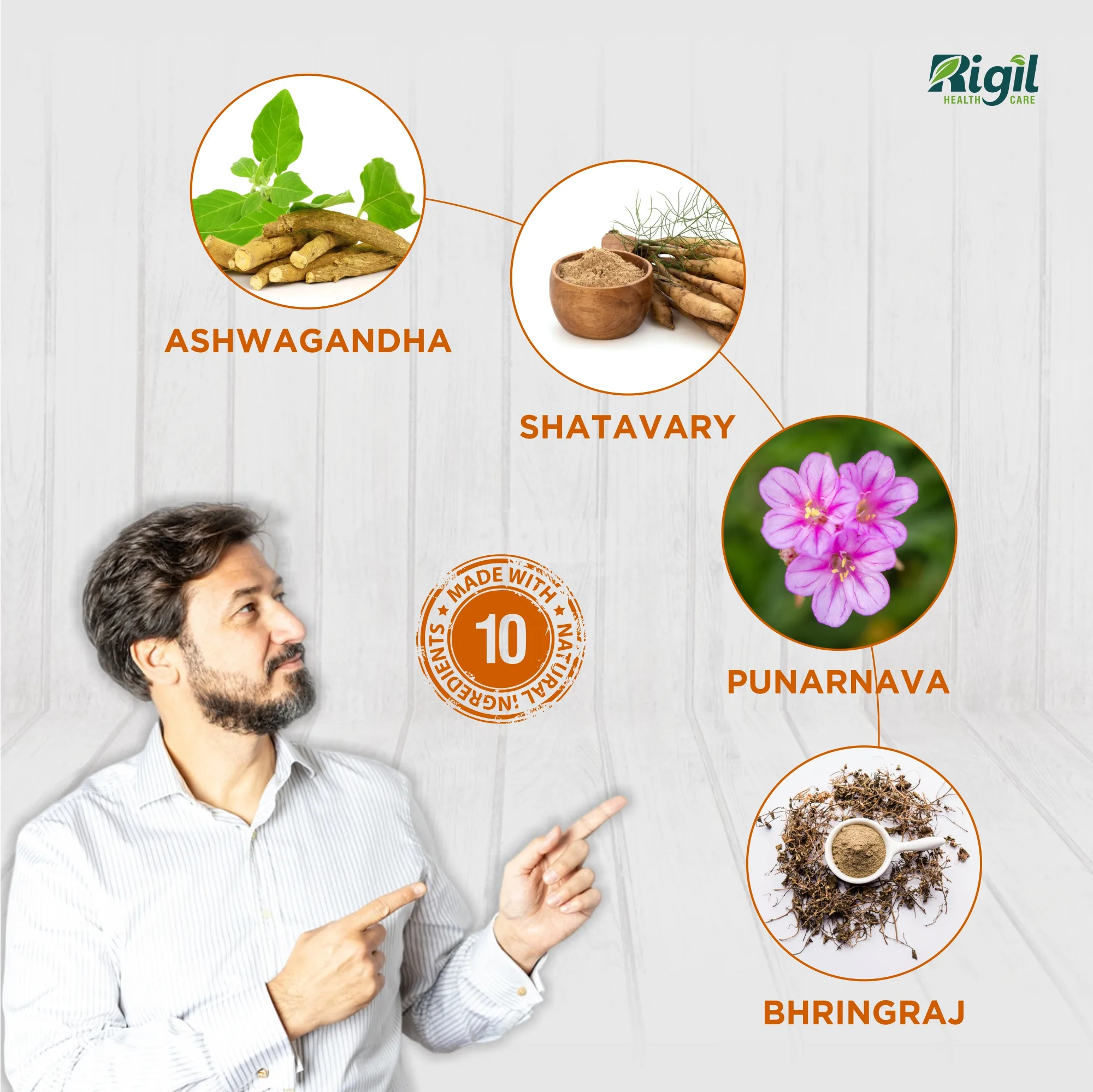 - Made with Ashwagandha, Satavary,Punarnava, and many others ayurvedic herbs.