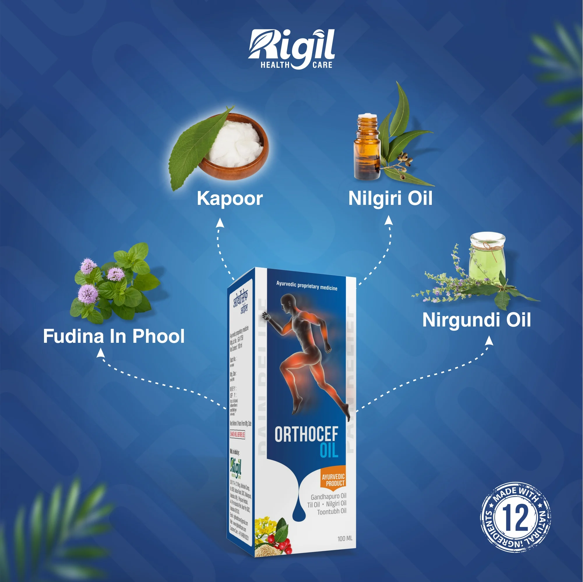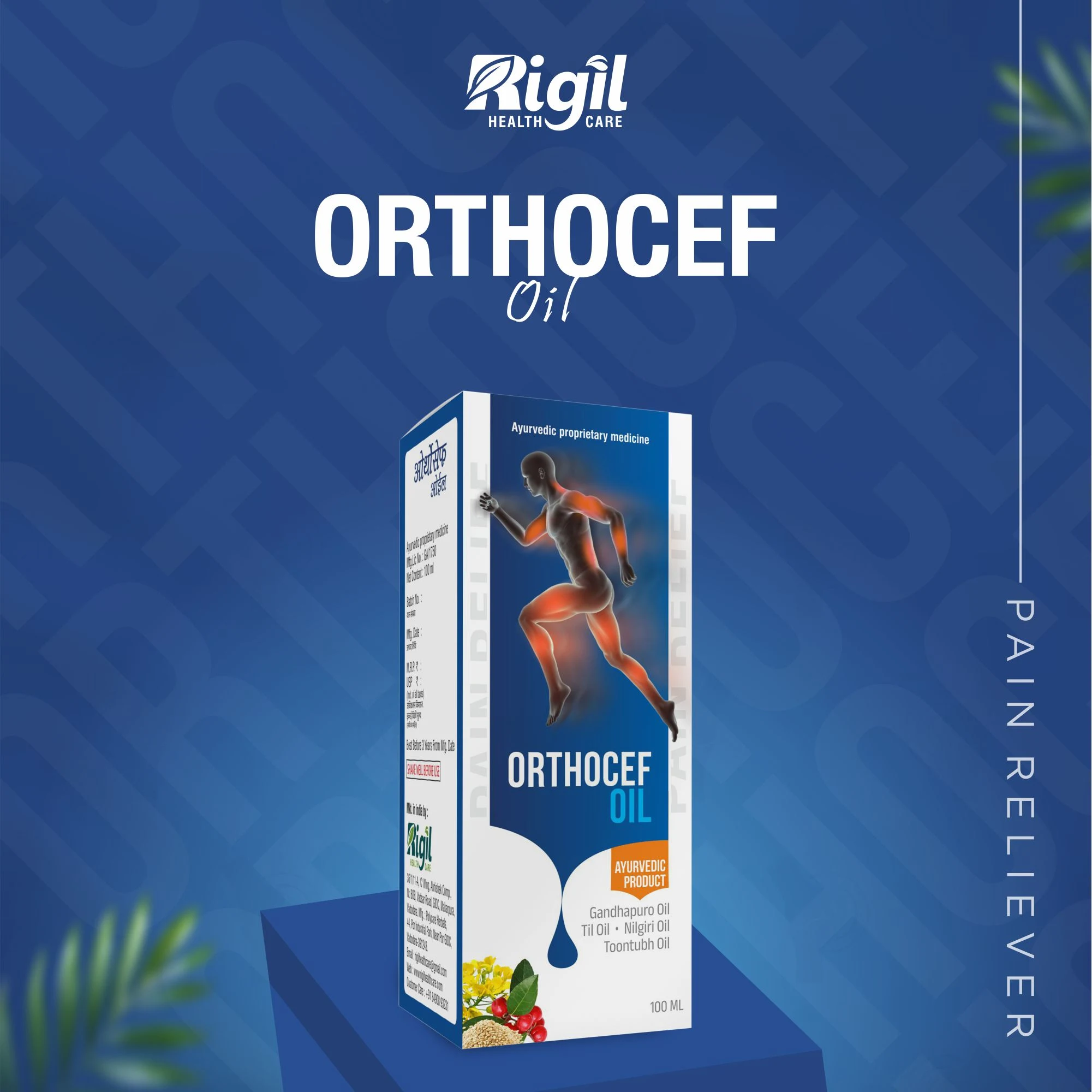 Orthocef oil is a combination of traditionally used aromatic oils with known muscular pain relieving effect. Onset of action is prompt, ensuring quick relief from pain. Orthocef contains very carefully selected Herbal Extracts that are blended to strengthen the pain relief capacity of it. And also useful during pregnancy.