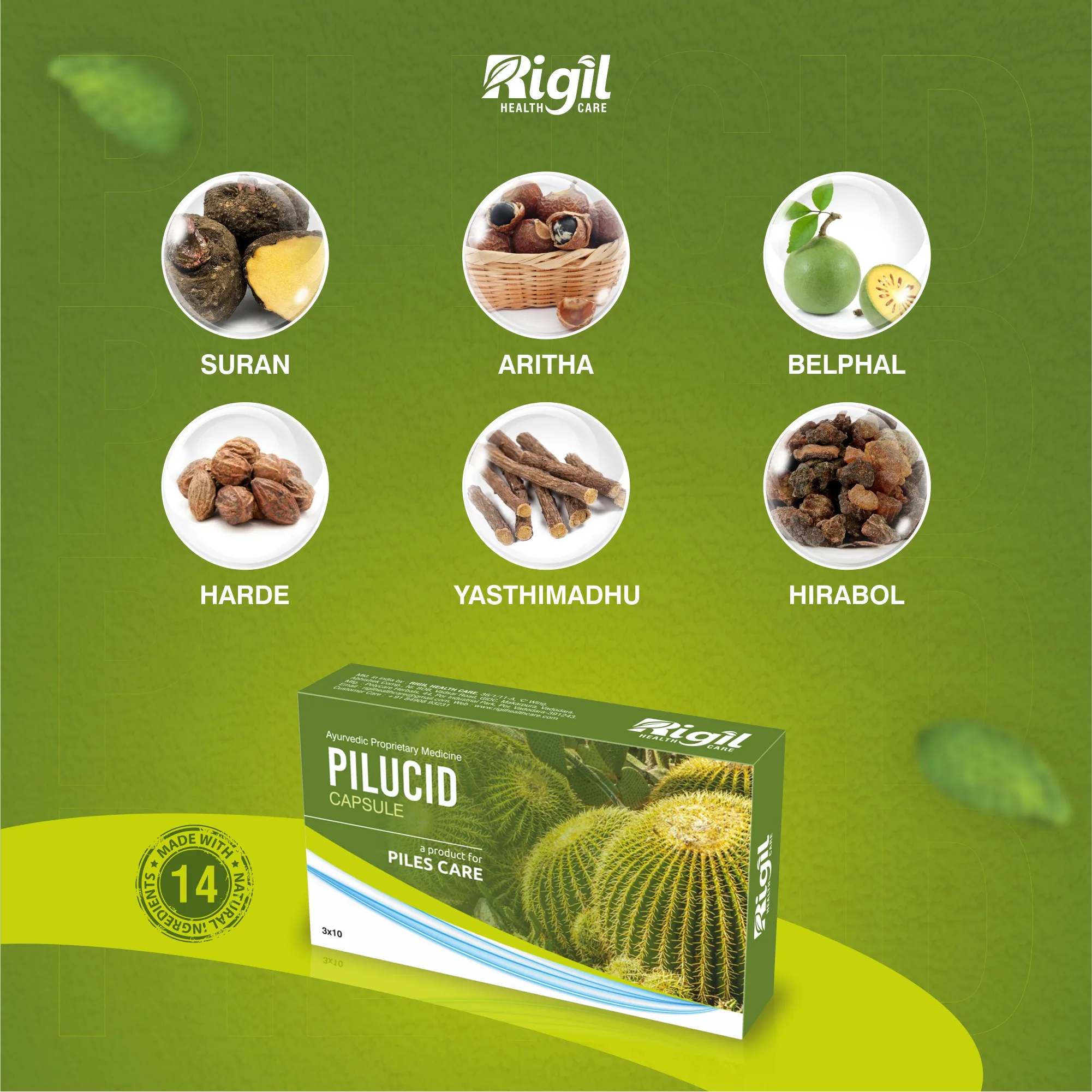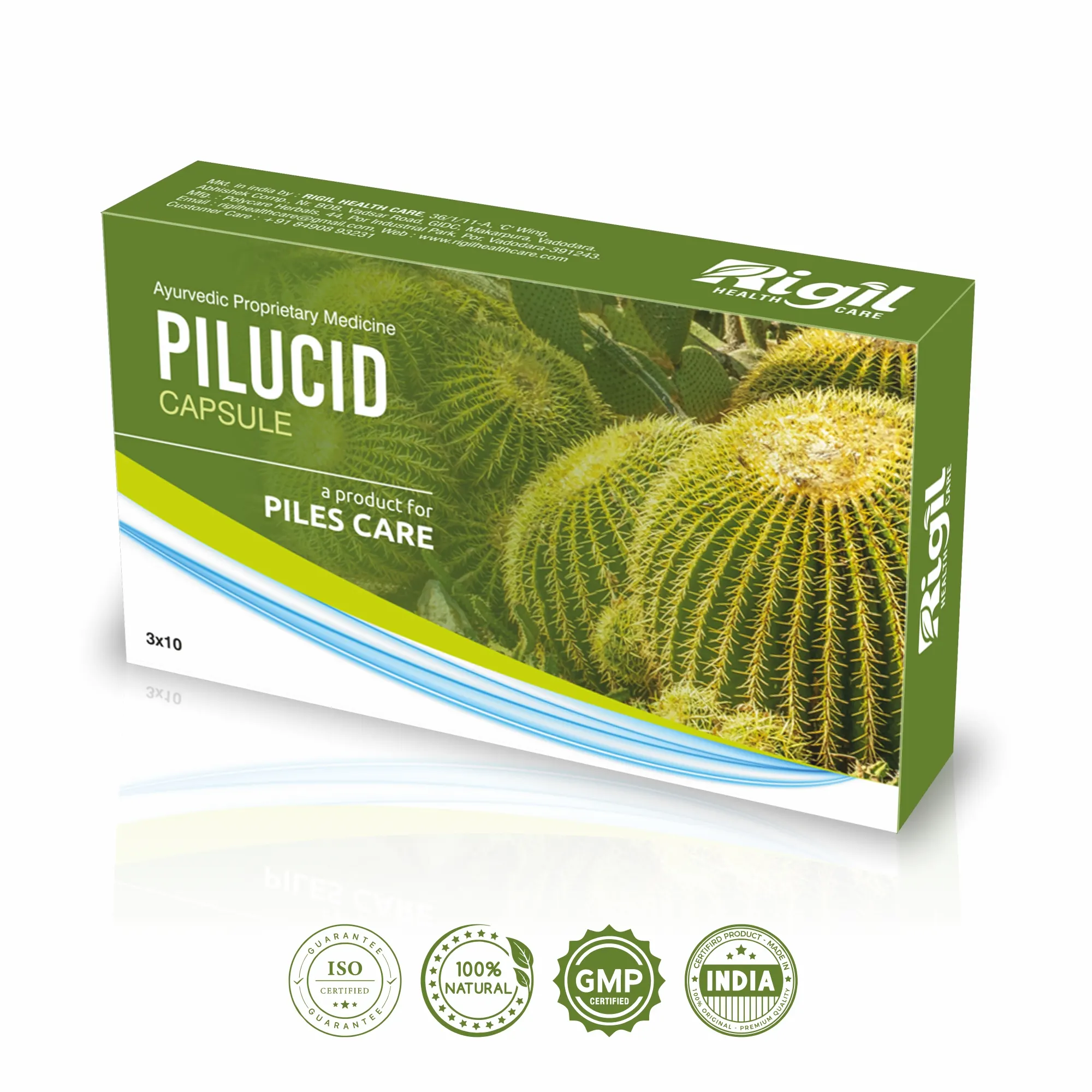 Pilucid Capsule is an ideal Ayurvedic formula that offered by us are specially for bleeding piles, fissures, and fistula. The ingredients used in the formulation of the Ayurvedic Piles Capsule ensure fast & effective relief from respective ailments.