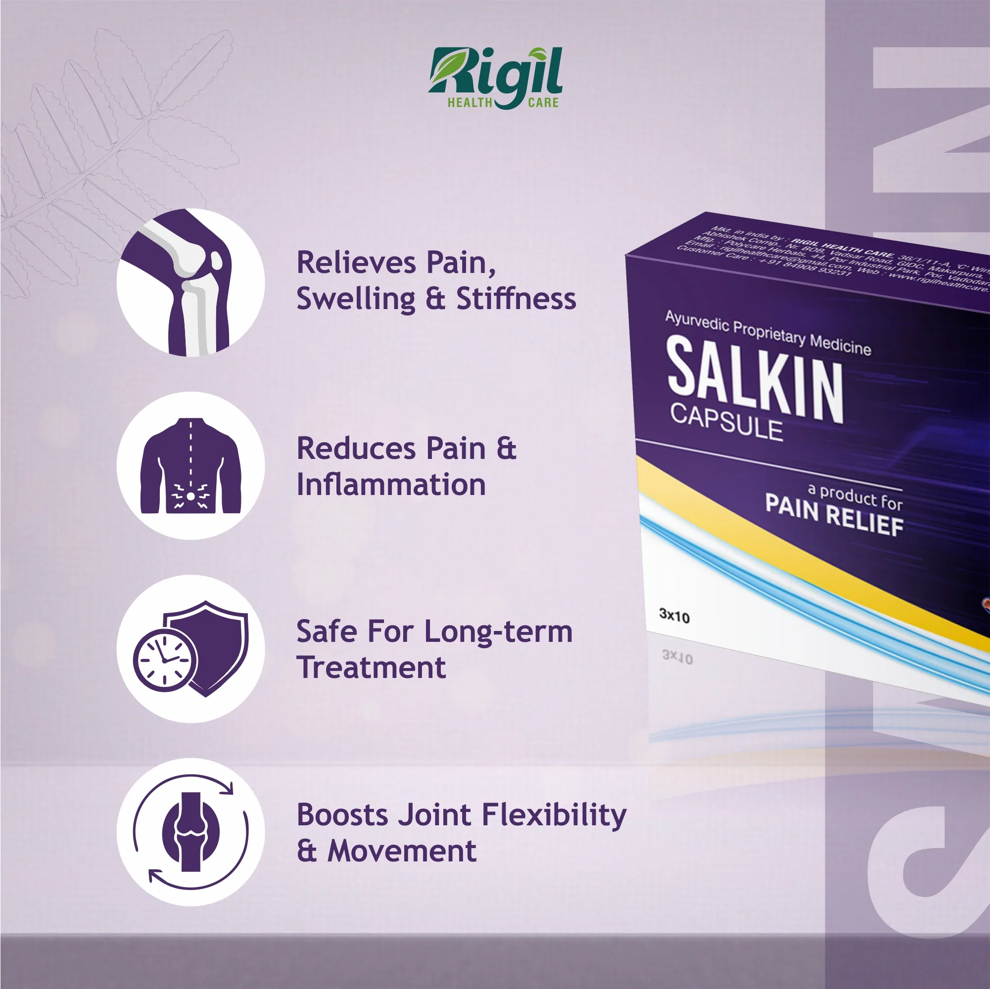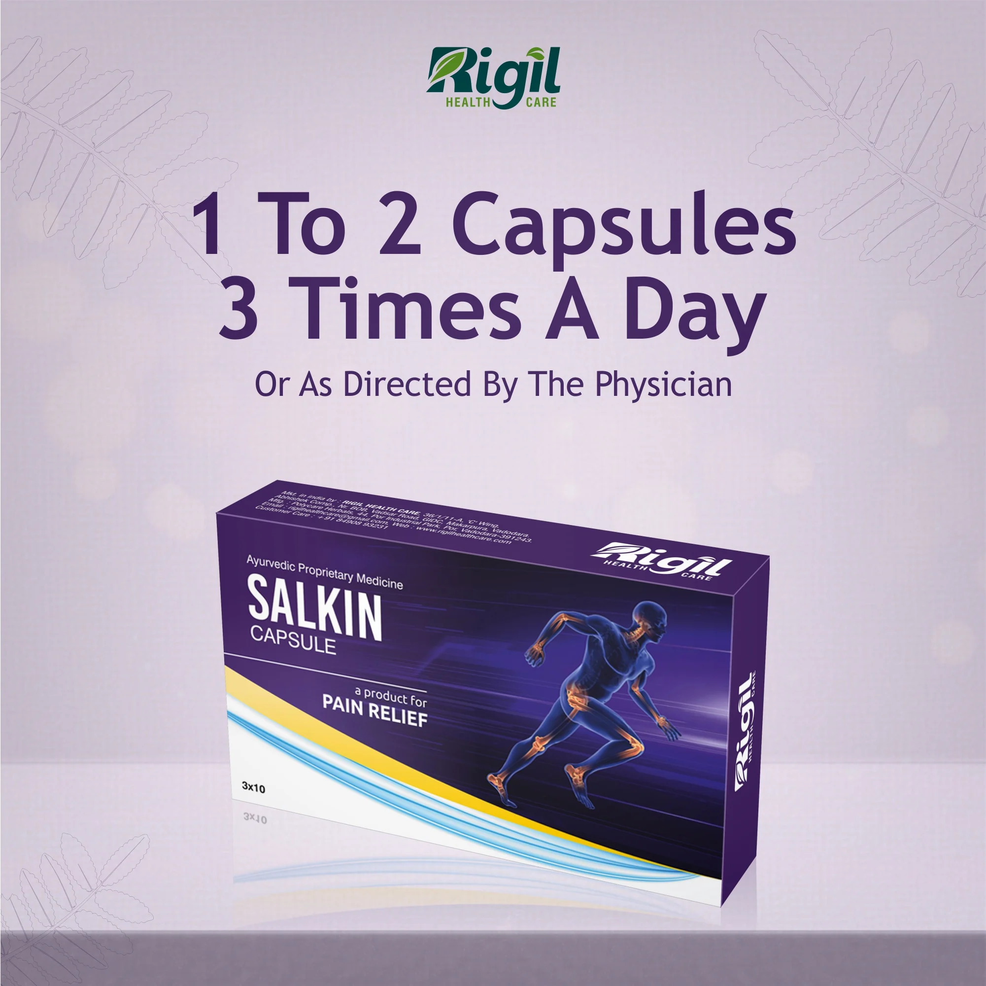 Consumption of Salkin leads to reduction in joint swelling, increased mobility, improved grip strength, and general improvement in joint health and work as pain reliever. Sallaki (Boswellia Serrata), with Suranjan is a non-steroidal, anti-arthritic, and 100% herbal.