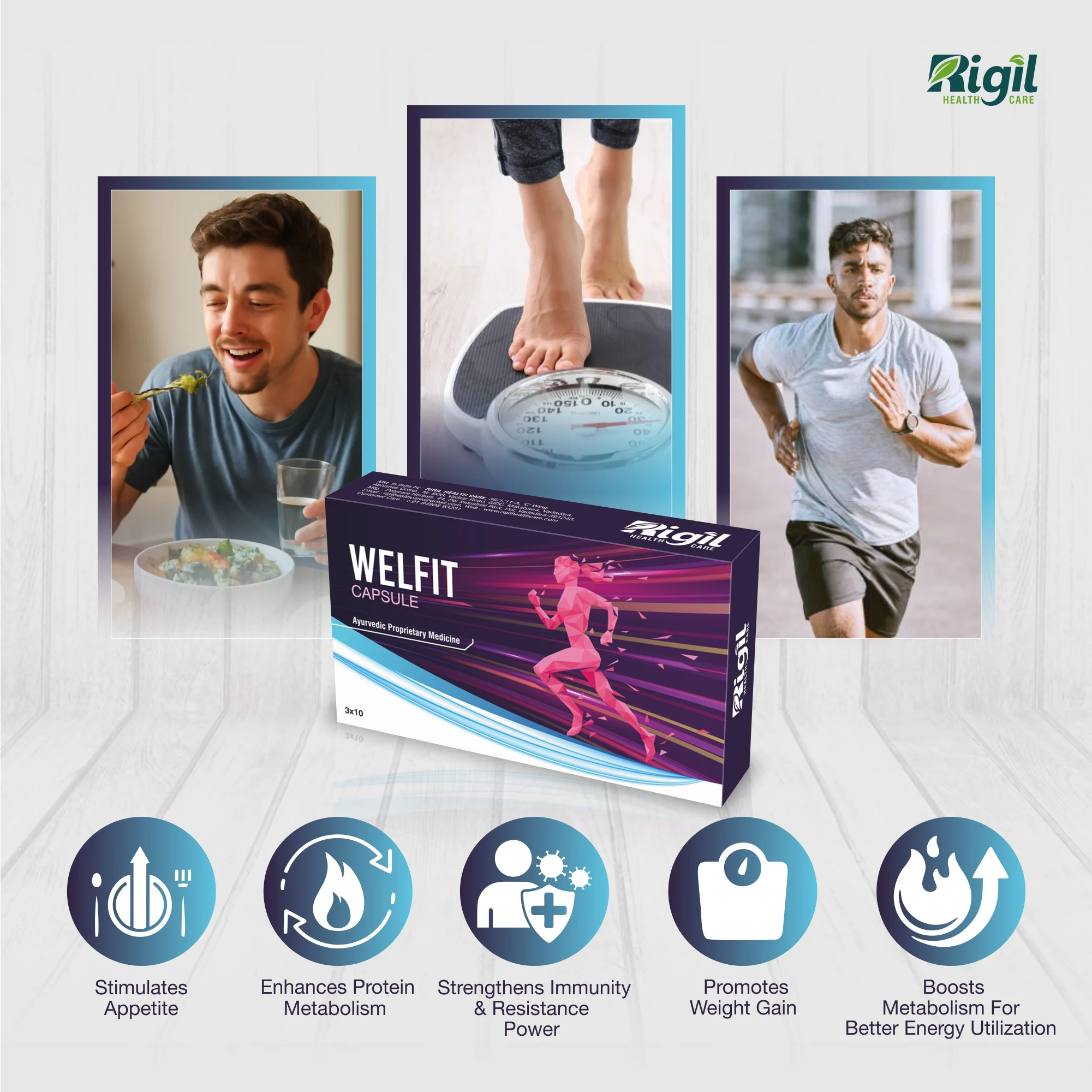 Welfit Capsule is an ideal Ayurvedic Vitamin-mineral formula that provides a comprehensive nutritional supplementation to cure the debility of any reason. It enhances mental and physical health, strength and capabilities to fight diseases.